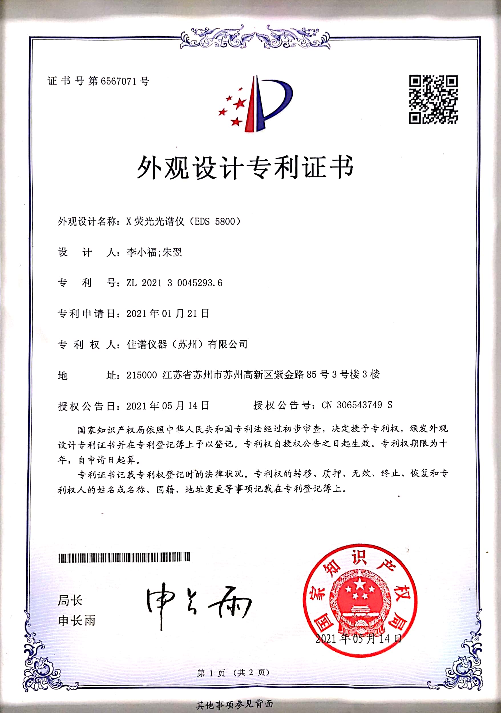 外觀設(shè)計(jì)專利證書(shū)-X熒光光譜儀(EDS 5800).jpg
